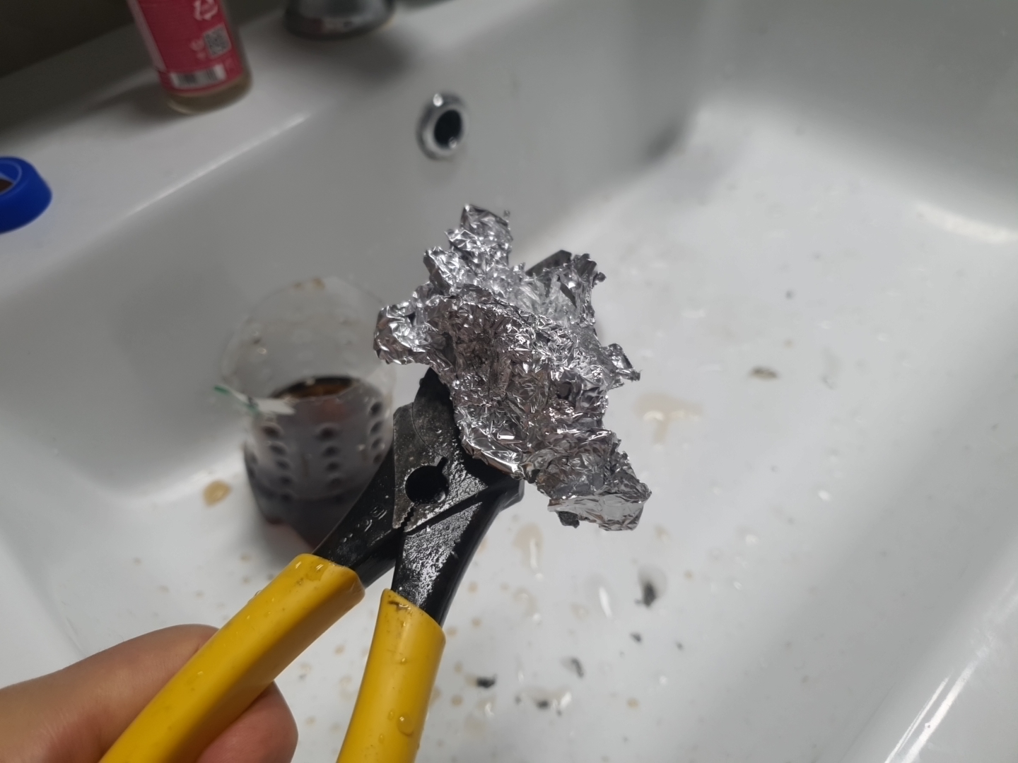 일단은 긴장되니까 콜라를 몇모금 마셔주고, 플라스틱 콜라병을 반으로 갈라서 뺀치를 담가두었다. 보통 전문가들은 20분 정도 경과 후 확인해 보면 녹제거 되고 알루미늄 호일로 마구 문질러 주면 깨끗해진다길래 해보니 20분은 너무 짧은 것 같다.